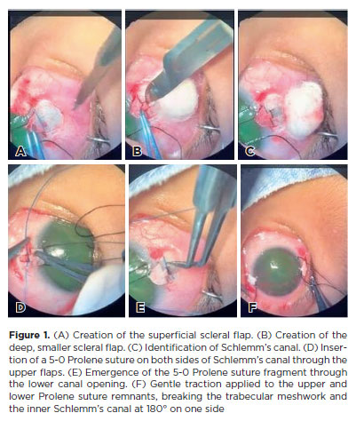 To address this issue, Chin et al.(9) proposed a modification in 2012 involving the creation of a deep scleral flap, similar to that used in deep sclerectomy, to facilitate identification of Schlemm’s canal and the insertion of the Prolene suture. Nonetheless, concerns regarding false passage creation during circumferential trabeculotomy and difficulties in achieving full 360° canalization prompted us to further refine this technique to enhance safety.