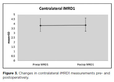 The changes in postoperative contralateral iMRD1 measurements compared with preoperative values were statistically significant (p>0.05) (Table 1 and Figure 3).