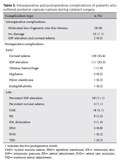 CONCLUSION: Posterior capsule rupture is a common complication of phacoemulsification surgery that requires prolonged postoperative follow-up and a multidisciplinary approach. Despite the increased incidence of complications when rupture occurs, appropriate intraoperative and postoperative management can lead to satisfactory visual outcomes.