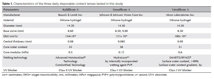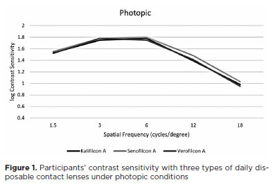 PURPOSE: This study aimed to compare the effects of three different daily disposable contact lens materials on contrast sensitivity.