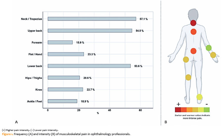 PURPOSE: To assess musculoskeletal symptoms, identify the most affected body areas, and investigate factors associated with the development of musculoskeletal disorders among ophthalmologists in Brazil.
