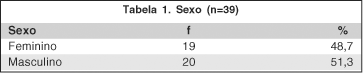 A amostra foi composta por 39 oftalmologistas. Destes, 51,3% dos sujeitos eram do sexo masculino, 48,7% do sexo feminino (Tabela 1).
