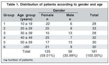 The patients and the examinations that complied with established criteria constituted the sample of the current study: 181 subjects (181 eyes) (Table 1).