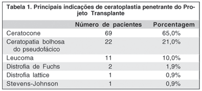 As principais indicações de transplante de córnea feitas no nosso serviço encontram-se na tabela 1.