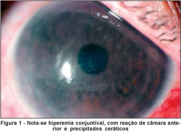 Descrições na literatura apontam que a infecção por Herpes simplex vírus (HSV) é a causa mais freqüentemente associada a inflamação intra-ocular ou uveíte anterior em outros países(1-3). Acredita-se que o HSV tipo 1 seja responsável pelo aparecimento do quadro de iridociclite, enquanto o HSV tipo 2 é observado nos casos de necrose aguda de retina (ARN)(4). Entretanto, o diagnóstico de uveíte herpética por vezes não é feito pelo fato de a ceratite poder não acompanhar o quadro de uveíte anterior e atrofia setorial de íris(1).