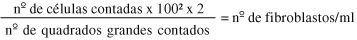 Como o número de fibroblastos em cada quadrado grande era menor de 100, contou-se 5 quadrados. A concentração foi dada por: