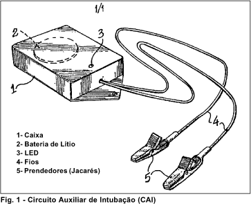O dispositivo consiste de um circuito elétrico que funciona com uma bateria de lítio de 3 volts em série com uma lâmpada tipo LED (light emitting diode). O conjunto fica alojado em uma caixa plástica de dimensões 4 cm x 3 cm x 1 cm, com uma abertura para a saída de 2 fios finos com comprimento médio de 30 cm cada um. O fio termina num prendedor (clip) que funciona como um interruptor (Fig.1).