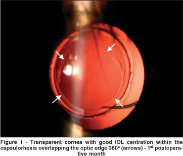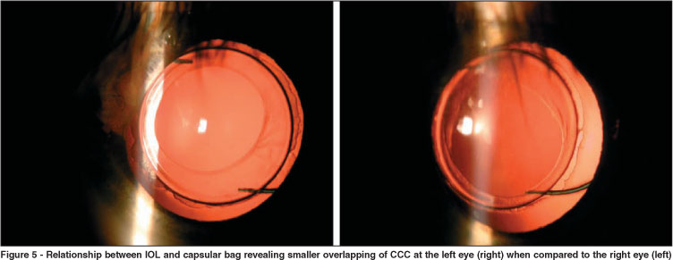 Due these adjustments at the IOL edges, the incidence of dysphotopsias decreased, but they were not eliminated being a important cause of IOL exchange, especially in cases where the IOL optic zone is not overlapped by the anterior rim of the capsulorhexis(13).