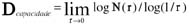 Para a obtenção da dimensão de informação, foi contado o número de pixels presentes em cada caixa, calculando-se a dimensão de informação através da seguinte expressão: