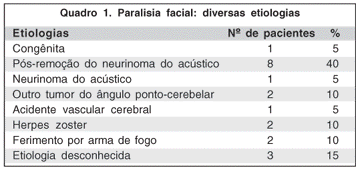 As causas das paralisias faciais estão listadas no quadro 1.