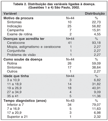 A distribuição das variáveis ligadas à doença está na tabela 2.