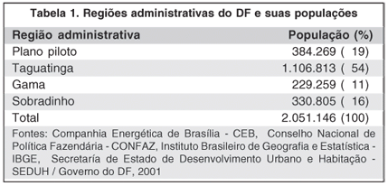 O número de habitantes de cada uma das regiões geográficas do DF encontra-se descrito na tabela 1.