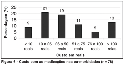 Outro fator que prejudica de maneira importante a adesão dos pacientes ao tratamento antiglaucomatoso é a presença de co-morbidades e o conseqüente gasto mensal com a aquisição de outras modalidades terapêuticas. Em 78% dos pacientes entrevistados, co-morbidades estiveram presentes, em especial a cardiovascular, representada pela HAS, observada em 65% dos casos. Cerca de 29% dos pacientes gastaram acima de 50 reais/mês com o tratamento das co-morbidades, excluindo o custo do tratamento ocular. Vinte por cento da amostra analisada necessitava de adquirir acima de 4 fármacos para o tratamento das co-morbidades. Entretanto, a maioria dos fármacos utilizados nas co-morbidades era adquirida pelo sistema único de saúde.