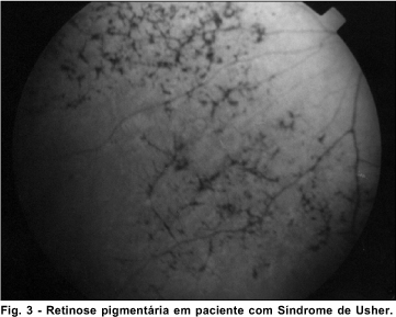 Nos 5 pacientes examinados foi encontrada a retinose pigmentária.