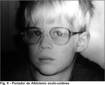 Os achados oculares frequentemente encontrados nos vários tipos de albinismo óculo-cutâneo podem ser: diminuição da pigmentação da íris e retina, nistagmo, fotofobia, erros refracionais e diminuição da acuidade visual.