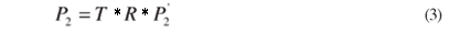 Como exemplo mostramos, na figura 5A, um ponto qualquer mensurado na córnea P1= (X1, Y1, Z1) onde também vale P1= P1'= (X1', Y1', Z1'), ou seja, como não há translação e nem rotação do olho com relação ao cone, ambos os referenciais são idênticos e portanto as coordenadas medidas em um referencial são exatamente iguais às coordenadas medidas no outro referencial, ou seja, X1= X1', Y1= Y1', Z1= Z1', e este fato vale para todos os milhares de pontos mensurados sobre a córnea. Já para uma situação em que há rotação e translação do olho (Figura 5B), um ponto P2 medido no referencial do olho não tem mais as mesmas coordenadas do mesmo ponto quando do ponto de vista das coordenadas do cone, ou seja, P2¹P2', de tal maneira que X2¹X2', Y2¹Y2', Z2¹Z2'. Mas quando se mede qualquer ponto sobre a córnea lembre-se, como mencionamos anteriormente, o videoceratógrafo sempre usa o seu próprio sistema de coordenadas (X', Y', Z'), sendo que, como também já mencionado, utiliza-se sempre o sistema de referencial do olho para imprimir e visualizar dados da topografia da córnea, ou seja, o sistema (X, Y, Z). Desta maneira, quando há uma translação e rotação do olho, para que as medidas do topógrafo possam ser utilizadas de maneira correta, é necessário que os pontos passem por uma transformação geométrica para que estejam com as novas coordenadas no sistema de coordenadas do olho e não do videoceratógrafo. Este processo pode ser representado matematicamente como: