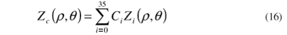 onde o termo à esquerda dentro do colchete representa a elevação da córnea obtida através do videoceratógrafo e o termo à direita representa a somatória de cada Polinômio de Zernike (Zi) multiplicado por seu respectivo coeficiente (Ci). Como pode ser visto, estamos utilizando os 36 primeiros termos de Zernike, embora estes polinômios possam ser gerados até a ordem que se desejar(38). A utilização dos primeiros 15 termos não é uma imposição nossa, é apenas o número comumente sugerido na literatura para aproximações de dados referentes às aberrações do olho e que podem também ser perfeitamente utilizadas para descrever a topografia da córnea(36).