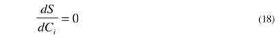 Para minimizar o termo S da equação (17) aplicamos a primeira derivada com relação a todos os coeficientes e igualamos a zero (ponto de mínimo):