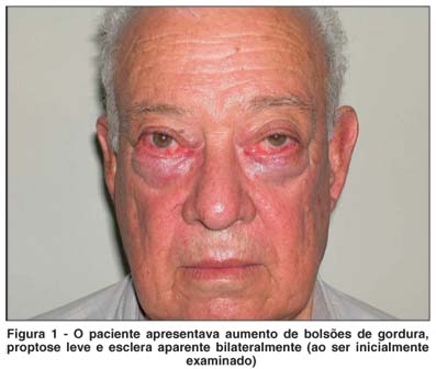 Paciente de 75 anos, masculino, branco, agricultor, compareceu ao Serviço de Oftalmologia do Hospital de Clínicas da Faculdade de Medicina de Botucatu (UNESP) no ano de 2002, com queixa de lacrimejamento bilateral e bolsas de gordura proeminentes.