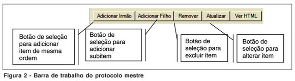 Dados também podem ser retirados do protocolo mestre através do ícone remover da barra de trabalho, portanto não podem ser recuperados, nem seus subitens (Figura 2). Cada item adicionado ao protocolo mestre é automaticamente salvo mesmo quando o programa é fechado. A opção atualizar deve ser usada quando se deseja alterar algum dado incluído sem, porém ter de retirá-lo do programa.