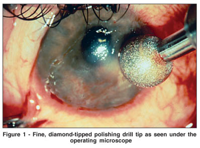 Diamond burr superficial keratectomy (DBSK), in contrast, is an inexpensive alternative to PTK for the removal of superficial corneal opacities and surface irregularities that interfere with vision(9-11). In this report, we describe the results of diamond burr superficial keratectomy (DBSK) for the management of visually-significant superficial corneal lesions in 23 consecutive eyes.