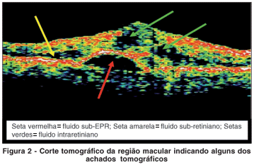 Apesar dos resultados de Giovannini et al.(14) e de Sahni et al.(15) coincidirem em parte, ambos não descreveram a presença fluido sub EPR como padrão da OCT, o que foi encontrado no estudo aqui apresentado.