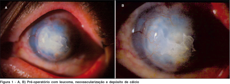 Apesar da melhora cosmética evidente da córnea, o paciente manteve hiperemia conjuntival crônica e olho doloroso, provavelmente relacionada à doença de base. No seguimento pós-operatório, melhorou com uso de corticoesteróide tópico e oral e lubrificantes tópicos.