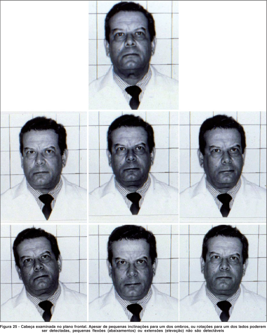 Ora, se a "simples" posição primária do olhar já apresenta tais dificuldades conceituais, embora contornáveis, fica por outro lado praticamente inviável concretizar as condições operacionais de sua obtenção, a ponto de se chegar a renunciá-la como realidade tangível. De fato, num sistema de três eixos (ou planos) mutuamente ortogonais, basta a caracterização de dois deles para que o terceiro fique também conhecido. Todavia, a aparente ortogonalidade de linhas num dado plano não é suficiente para que se diga que elas sejam efetivamente ortogonais. Em outras palavras, a posição tridimensional de uma linha não pode ser conhecida, apenas, pelo exame de duas de suas três coordenadas espaciais (isto é, pelo conhecimento da projeção dessa linha num dado plano), requerendo-se que ela seja determinada num outro plano, perpendicular ao primeiro. Isso significa que não se pode afirmar a ortogonalidade de uma linha horizontal e outra vertical pela observação do plano frontal da cabeça (isto é, pelo exame da face).
