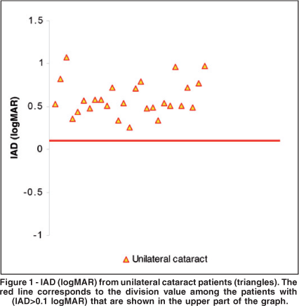 Figure 1 shows the IADs values for cataract cases considering 0.10 logMAR as maximum IAD limit for amblyopia diagnosis.