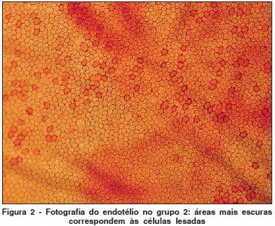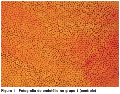 A porcentagem de dano endotelial induzido pelo procedimento no grupo 1 (controle) foi de 0,18% (Figura 1).