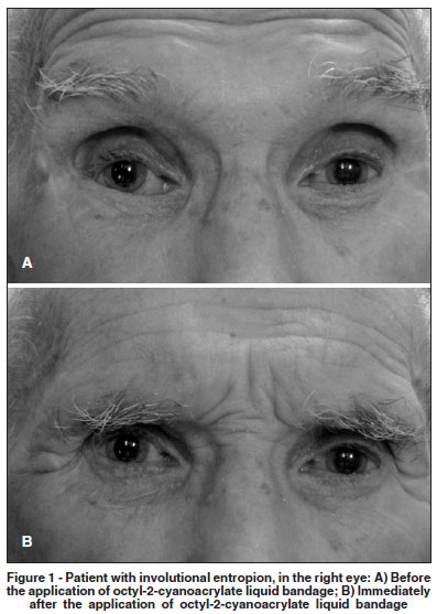 CONCLUSION: Octyl-2-cyanoacrylate liquid bandage showed to be a simple, safe and effective option to temporarily treat involutional entropion, while patients waited for surgical intervention.