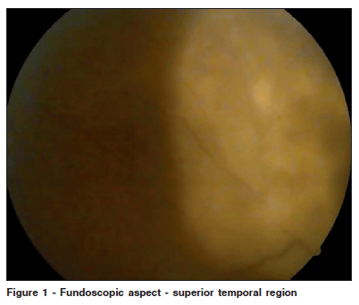 Syphilis had a decreasing prevalence along the years, but it is experiencing a new rise in the number of cases in the last decade in several countries around the world, including Brazil, United Kingdom and United States of America, that experienced a 33,5% increase in the incidence between 2000 and 2004(3). Ocular disease by syphilis is rare, affecting about 2.5% to 5% of patients with tertiary disease. The ocular manifestations may be diverse, with previous descriptions of focal retinitis, papillitis, iritis, keratic precipitates, periphlebitis, vitreitis and serous retinal detachment(4-5), making the diagnosis based solely in clinical findings impossible(6), and thus requiring high level of suspicion for its detection.