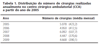 O número de cirurgias realizadas anualmente no CCA a partir de 2005 está demonstrado na tabela 1.