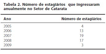 Também para adequar-se ao novo cenário em 2009, o número de estagiários que ingressaram no Setor de Catarata foi reduzido de 17 para 3, diminuindo de 18 para 15 o número de oftalmologistas diariamente presentes no CCA (Tabelas 2 e 3) e, consequentemente, reduzindo a atuação na formação de recursos humanos.