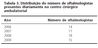 A tabela 3 mostra o número de oftalmologistas presentes diariamente no CCA.