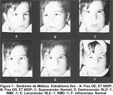 O comprometimento dos nervos abducentes e faciais ocorreu em todos os pacientes com Síndrome de Möbius. Acredita-se que a paralisia dos retos laterais favoreça a contratura dos retos mediais, que gradualmente perdem sua função. A abdução piora com a contratura dos retos mediais, obrigando o paciente a fixar à direita com o OE e à esquerda com o OD, o que provavelmente evita a ambliopia.