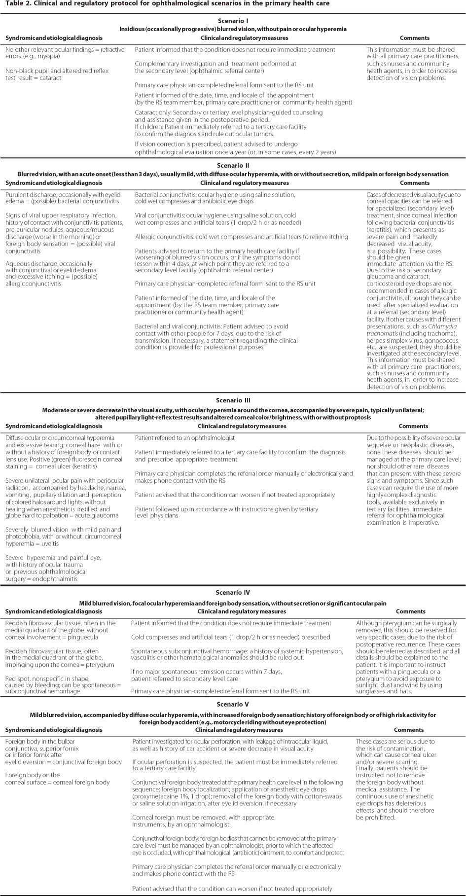 CONCLUSIONS: These Clinical and Regulatory Protocols could represent a useful tool for health systems with universal access, as well as for health care networks based on primary care and for regulatory system teams. Implementation of these Clinical and Regulatory Protocols can minimize the disparity between the needs of patients with impaired vision and the treatment modalities offered, resulting in a more cooperative health care network.