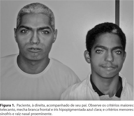 Também, na literatura nacional, outros autores descreveram a síndrome em 8 pacientes. Distopia canthorum e hiplerpasia da raiz nasal estavam presentes em todos, hiperplasia do supercílio e mecha branca frontal em 6 e heterocromia iriana, despigmentação cutânea e surdez em 3 indivíduos(9).