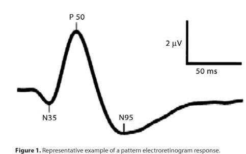 Berninger, HeidereiderHi(29) described the PERG abnormalities among 20 patients affected by acute optic neuritis after remission of their disease. According to their report, there was a reduction in P50 amplitude in all patients and a reduction in the N95 amplitude in 18 patients during an acute episode of optic neuritis. After remission, there was recovery of the P50 component to normal levels, yet the reduction in N95 persisted.