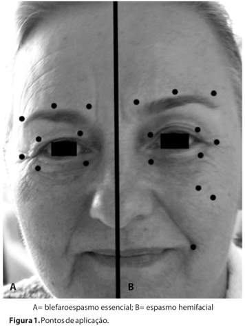 Pacientes com diagnóstico clínico de BE ou EH, oriundos do Departamento de Oftalmologia da Universidade Federal de São Paulo, foram convidados a participar do estudo por meio de assinatura de termo de consentimento livre e esclarecido. Alergia conhecida à toxina botulínica ou componente da medicação, presença de qualquer outra doença sistêmica ou ocular prévia que poderiam interferir com os resultados do estudo e tratamento prévio com toxina botulínica há menos de seis meses foram considerados critérios de exclusão.
