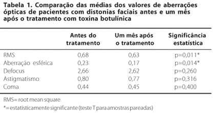 0,05). CONCLUSÃO: O tratamento com toxina botulínica A pode diminuir as aberrações esféricas em pacientes com distonias faciais." />