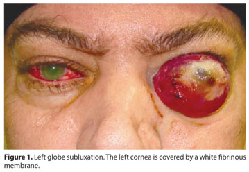 Globe subluxation is defined as a sudden anterior displacement of the globe beyond the orbital rim(1). It is an acute and painful event that generates considerable distress to affected patients. The optic nerve is tethered and corneal exposure ensues as the globe is continuously maintained outside the orbital limits by the combined action of eyelid retraction and orbicularis contraction(2).