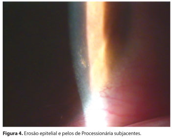 Estas particularidades morfológicas tornam as formas de atingimento corneano de abordagem delicada. A tentativa de remoção mecânica do pelo pode propiciara sua migração intraocular, pelo que deve ser extremamente cuidadosa ou mesmo evitada e se possível substituída apenas pela lavagem copiosa da superfície ocular(10).