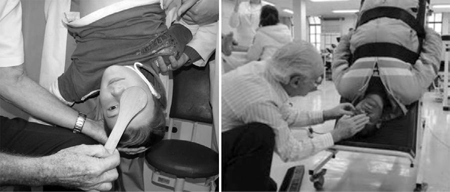 The upside-down position was achieved in the 2 young patients by an adult hanging them by the legs and in the remaining 8 adults by utilizing a special slanting bed that was specifically built for this investigation (Figure 1).