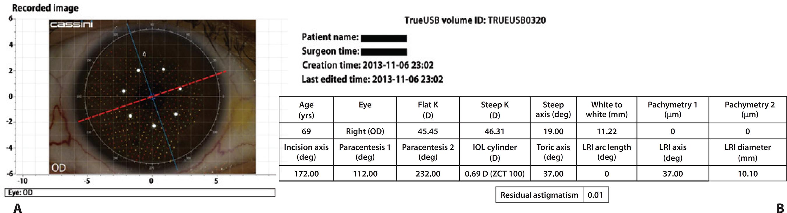 Several imaging modalities for toric IOL alignment have been developed, including the Callisto Eye with Z-Align (Carl Zeiss Meditec AG, Jena, Germany), the iTrace with Zaldivar Toric Caliper (Tracey Technologies, Houston, USA), the TrueGuide software (TrueVision 3D Surgical, Inc., Santa Barbara, USA), and the VERION Digital Marker (Alcon Laboratories, Ft. Worth, USA).