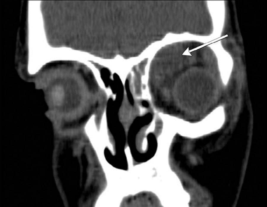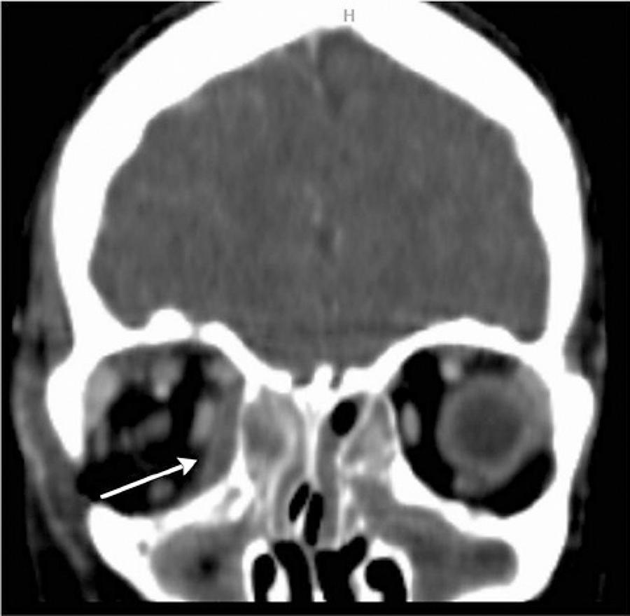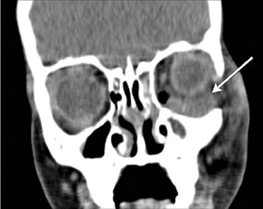 Sinusitis is a common disease and is typically managed without complications. In some cases, infection can spread to the orbit. If left untreated, several complications of orbital cellulitis can manifest including blindness, meningitis, and even death(1). Kanra et al. reported that orbital cellulitis was caused by sinusitis in 43% of cases(2). Other etiologies were dacryocystitis, orbital foreign body, periocular trauma, history of surgery, odontogenic infection, endophthalmitis, orbital tumors, and local skin inflammation(2,3). Before the antibiotic era, 20% of patients with periorbital cellulitis had permanent loss of vision, and 17% died(1). Nowadays, the vision loss has improved (3 to 11%) and mortality rates have declined (1 to 2.5%)(4). Because of the urgent situation in orbital infections, a multidisciplinary approach is needed.