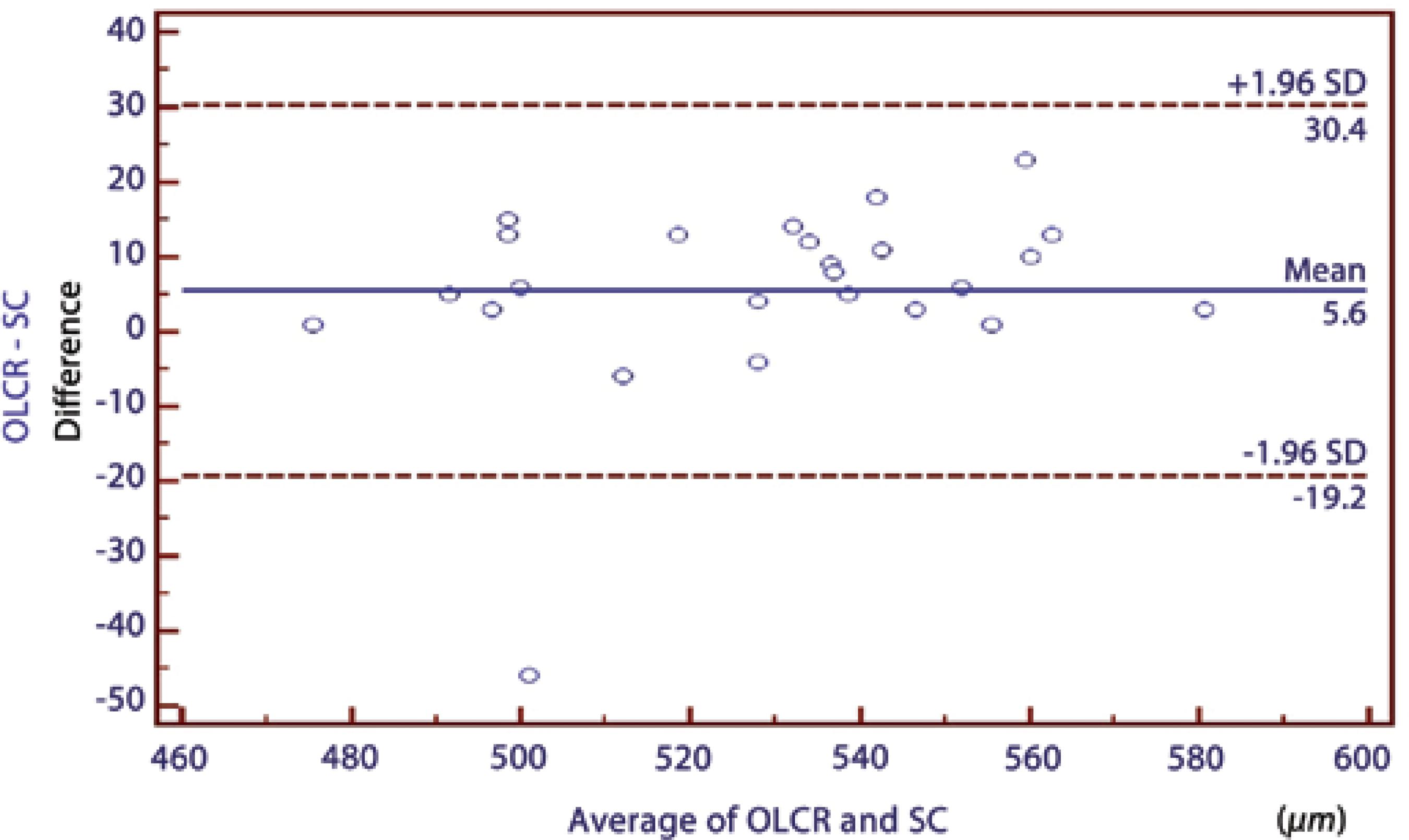 | OLCR/SC | 5.60 ± 12.65 | 0.95 | 30.40 to -19.20 | 0.110 |