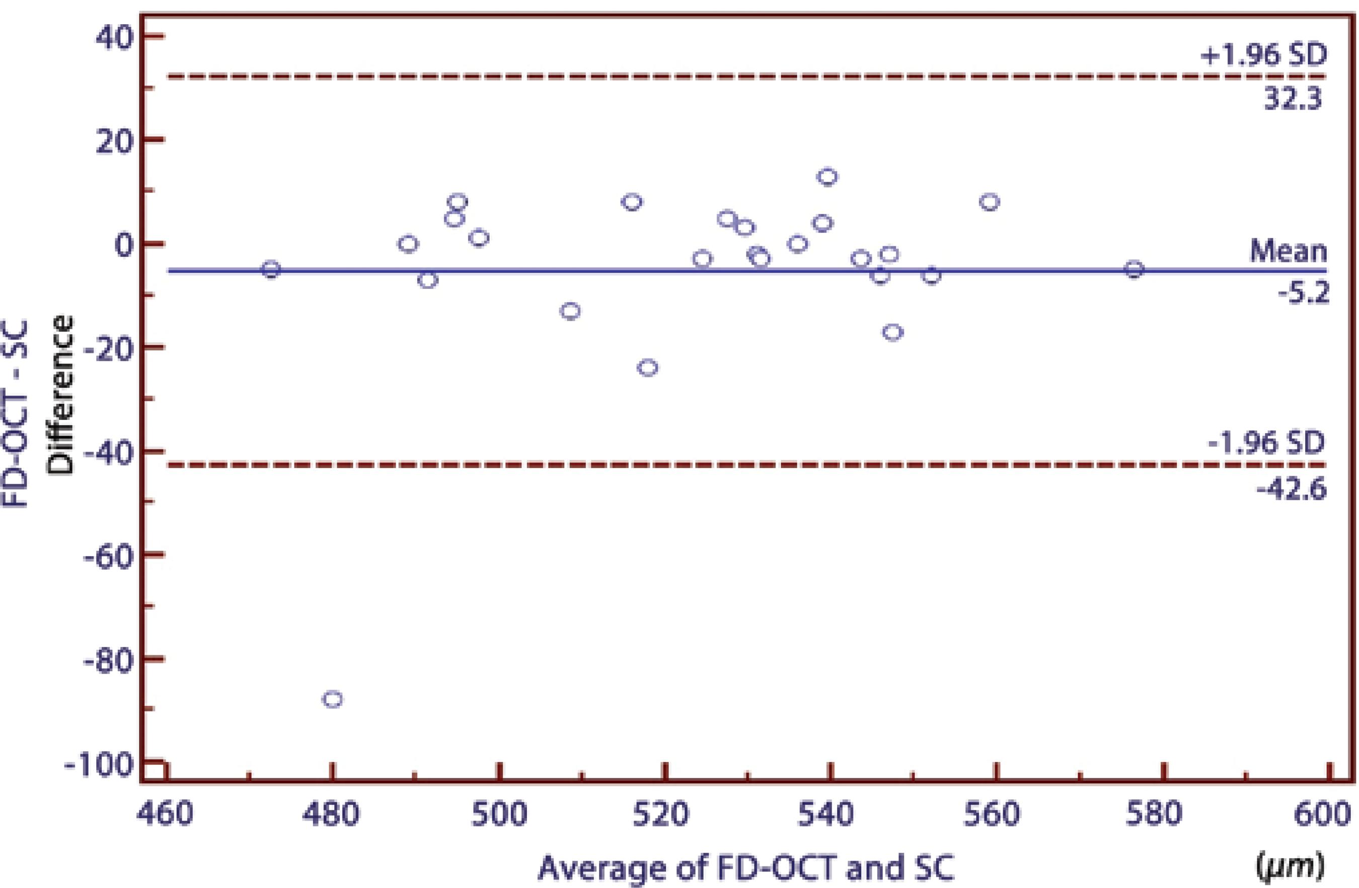 | FD-OCT/SC | -5.16 ± 19.09 | 0.91 | 32.30 to -42.60 | 0.568 |