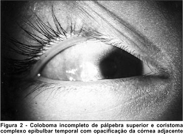 Na pálpebra superior ipsilateral observava-se um coloboma incompleto no terço medial (Figura 2).
