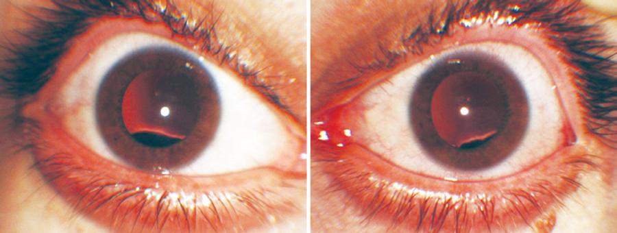 The etiopathogenesis of coloboma is heterogeneous. Although most frequently inherited as an autosomal dominant trait, autosomal recessive, X-linked, or sporadic cases can be observed. Furthermore, the iris, lens, choroid, retina, optic nerve, and/or ciliary body may be involved(5). Lens coloboma is extremely rare, and its existence is still questionable. In the present case, no other ocular structures were affected, and the lack of zonules was observed on the infero-temporal side. Lens coloboma is most frequently inherited as an autosomal dominant trait. The frequency of the location of the lesion compatible with optic vesicle coloboma suggests a developmental defect in the ciliary region of the optic vesicle which forms zonules. Zonular fibers may be absent or may be attached to the notch of the coloboma. Weakening of zonular fibers may be attributed to toxic, inflammatory, and genetic factors(1,2).
